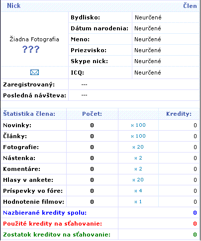 Ak má niekto problém s pridaním fotografie (obmedzené rozmery fotografie) v sekcii DOWNLOAD>SOFTWARE je opisaný program AUTO IMAGER v.3.03 , ktorý obsahuje okrem iného aj funkciu RESIZE, t.j. zmena rozmerov... Tak to je odomňa zatial asi všetko...Dufam že sa tohoto návrhu chytíte a vyplníte si svoje profily...